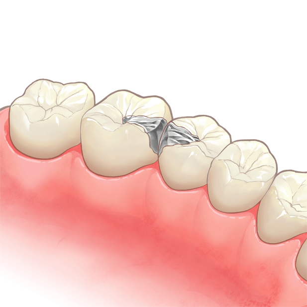 目立たない奥歯におすすめの、やわらかい貴金属の詰め物です。