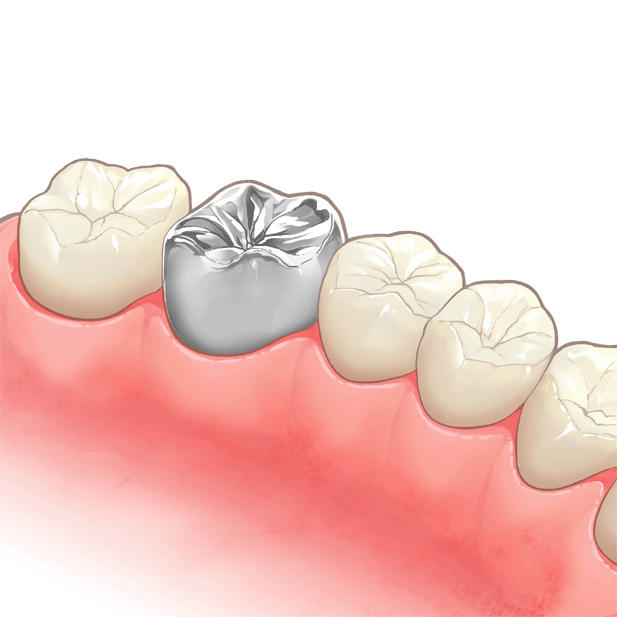 金合金や白金加金(ゴールドとプラチナの合金)などの貴金属を使用しています。しなやかな金属で歯との相性は抜群です。金属色にはなりますが、歯科修復材として高く評価されており、奥歯(臼歯)など目立たないところにおすすめです。