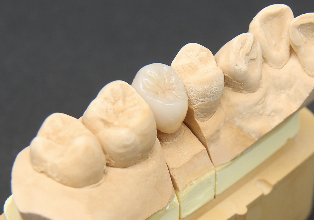 白く透明感のあるセラミックス(陶材)を使用した被せ物です。