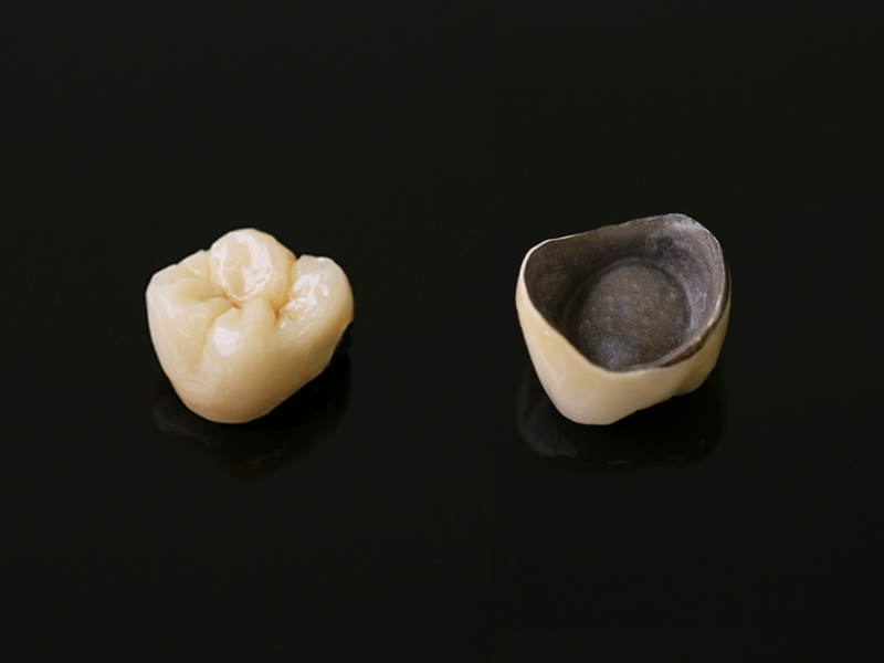 詰め物や被せ物には、金合金・銀合金といった金属製や樹脂材、セラミック材の物があります。