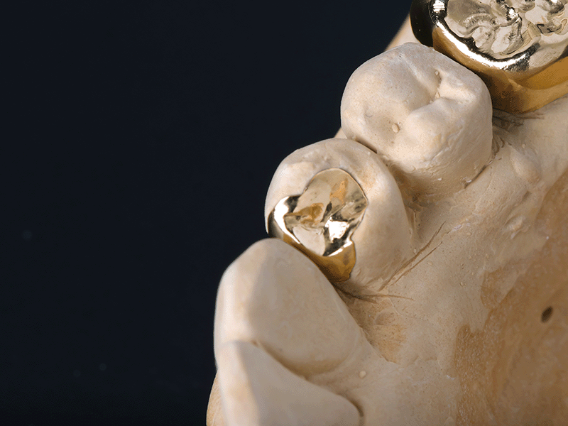 歯科修復材として高く評価されており、奥歯(臼歯)など目立たないところにおすすめです。金合金や白金加金(ゴールドとプラチナの合金)などの貴金属を使用しています。