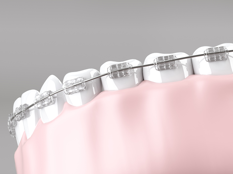 歯の表面にブラケットという装置を装着し、ワイヤーで徐々に歯を動かす方法です。幅広い症例に対応できます。